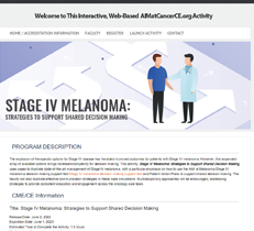 With an expanded array of therapeutic options for Stage IV melanoma, clinicians must grapple with increased complexity for decision making. This multimedia, interactive activity, Stage IV Melanoma: Strategies to Support Shared Decision Making uses cases to illustrate state-of-the art management of Stage IV melanoma. The activity also illustrates how to use the AIM at Melanoma Stage IV melanoma decision-making support tool Stage IV melanoma decision-making support tool and Patient Action Plans to support shared decision making. The esteemed faculty, Drs Anna Pavlick and Sunandana Chandra, also illustrate effective communication strategies and multidisciplinary approaches to provide streamlined care and consistent education and patient engagement across the oncology care team.